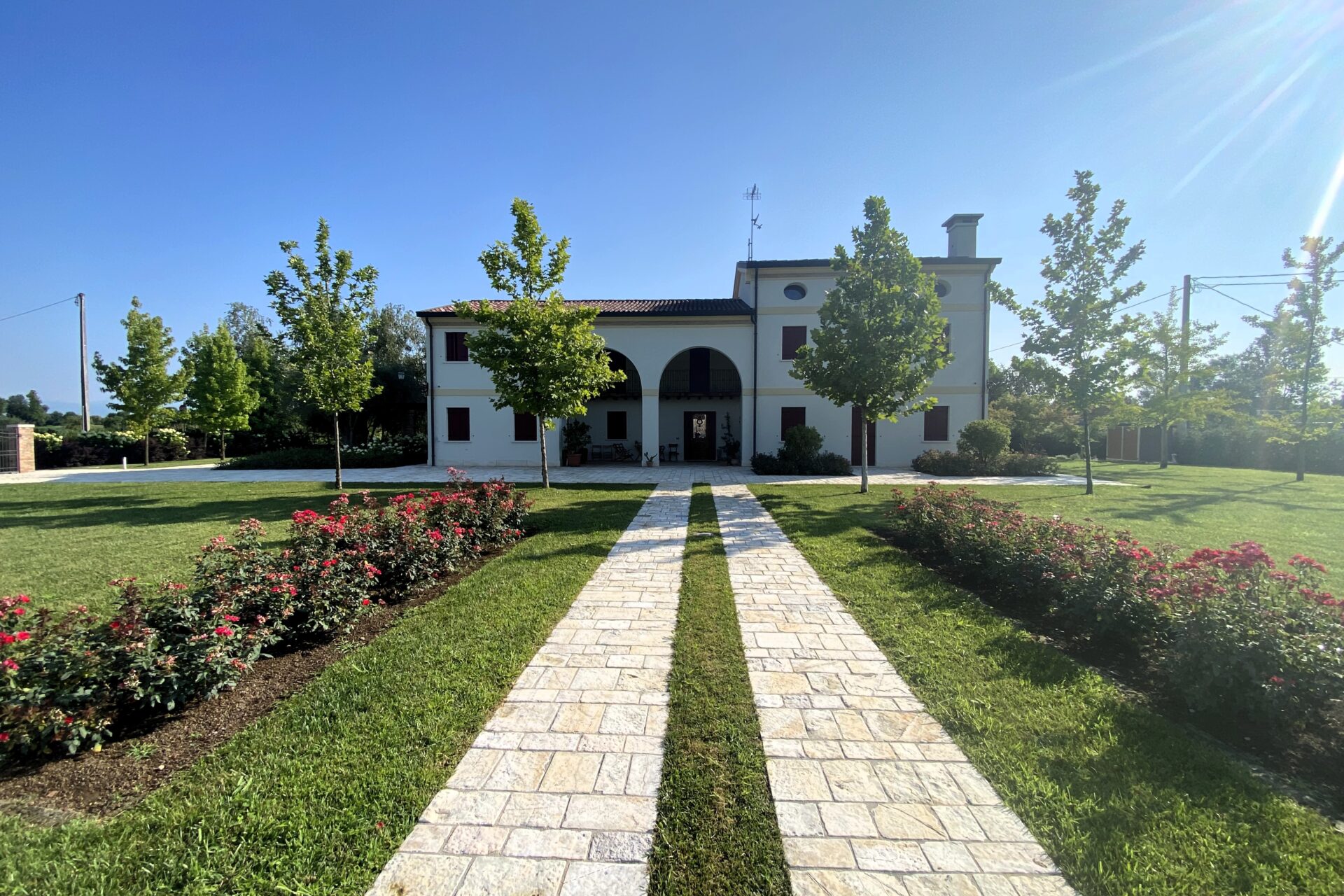 Una residenza di prestigio con una distribuzione volumetrica molto articolata inserita in un lotto di oltre due ettari di terreno nella campagna veneta.